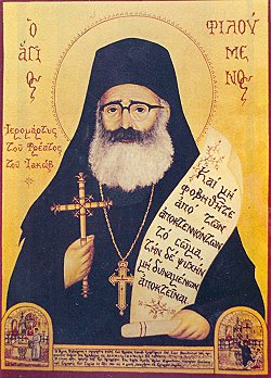 Άγιος Φιλούμενος 29 Νοεμβρίου Σε ηλικία δέκα ετών μαζί με τον αδελφό του περίμεναν να αποκοιμηθεί ο μεγαλύτερος τους αδελφός και αυτοί σηκώνονταν και προσεύχονταν κρυφά για ώρες. Κατάγονταν από το χωριό Ορούντα της επαρχίας Μόρφου. Καλή παιδαγωγό και δασκάλα της ευσεβείας είχαν τη γιαγιά τους Λωξάντρα, η οποία τους ζητούσε να της διαβάζουν βίους αγίων. Διαβάζοντας ο Άγιος του Θεού Φιλούμενος, τον βίο του Αγίου Ιωάννου του Καυσοκαλυβίτου, ως άλλος μιμητής εκείνου, έκαυσε τις επιθυμίες του κόσμου τούτου. Τα δίδυμα τέκνα της Μαγδαληνής και Γεωργίου Ορουντιώτη, Φιλούμενος και Ελπίδιος φλεγόμενα από θείο έρωτα, ξεκίνησαν για την παλαίφατη Ιερά Μονή Σταυροβουνίου. Εκεί παρέμειναν για πέντε χρόνια και μετά ανεχωρήσαν από τη μαρτυρική γη της Κύπρου στην Αγία Γην των Ιεροσολύμων. Ο πατήρ Ελπίδιος μετά από δώδεκα έτη διακονίας στα Ιεροσόλυμα συνέχισε τον εκκλησιαστικό του βίο σε διάφορα μέρη της Ορθοδοξίας και εκοιμήθη στο Άγιο Όρός. Ο Φιλούμενος έμεινε στην αγία γη για 46 έτη διακονώντας την εκεί αδελφότητα του Πατριαρχείου, ως φύλακας αγίων τόπων, αλλά εξαιρέτως αγίων τρόπων. Τελευταίος σταθμός της διακονίας του ήταν το Φρέαρ του Ιακώβ, το οποίον έγινε τόπος του μαρτυρίου του. Στις 29 Νοεμβρίου 1979, ημέρα της ονομαστική του εορτής, φανατικοί σιωνιστές, που διεκδικούσαν το προσκύνημα ως δικό τους, τον κατέκοψαν την ώρα του εσπερινού, Αγιοταφίτες πατέρες παρέλαβαν το τίμιο του λείψανο έπειτα από πέντε ημέρες και το ενταφίασαν στην αγία γη. Κατά την ανακομιδή των λειψάνων του, μετά από τρία έτη, αυτά ευωδίαζαν δείχνοντας την αγιότητα του. Η μνήμη του τιμάται