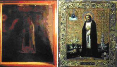 Σάρωφ. Στην εικόνα του είναι συνήθως στην ίδια θέση κατά τον επίκληση όταν
