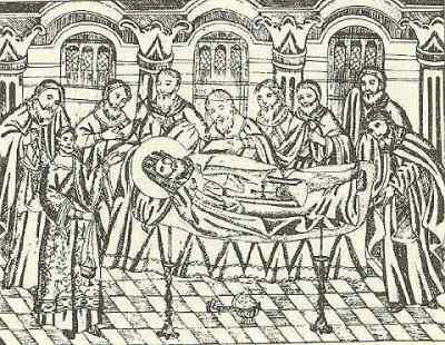 νεκρική οπού είχε. εμβαίνοντας λοιπόν μέσα εις το αγιον βήμα, εδιηγήθη